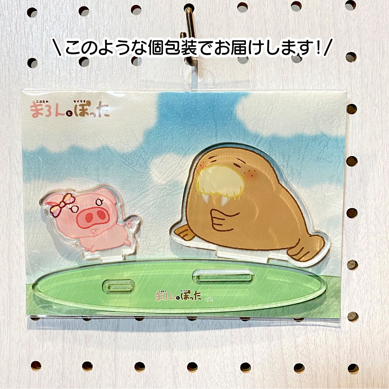 まろんとぽったが追いかけっこしている絵柄のアクリルスタンドです。