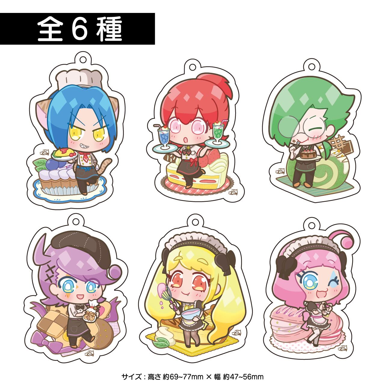 サンゲンショク×スイーツなデザインのアクリルキーホルダーです。全6種類。